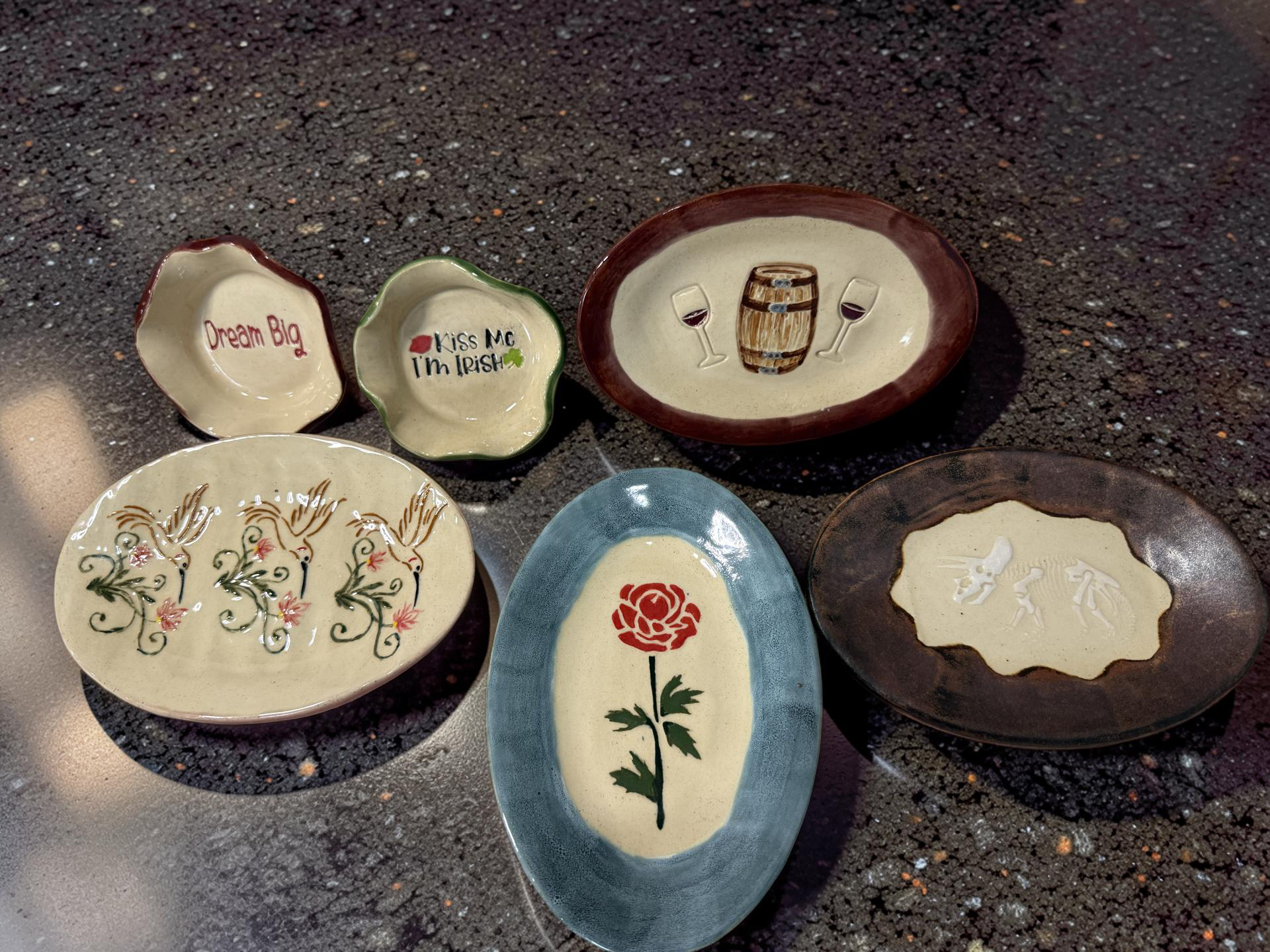 We specialize in custom work. Bowls, platters, mugs, ashtrays, and one-of-a-kind pieces shaped by your vision and brought to life with our craftsmanship. You choose the colors. You choose the design. We handle the rest, carving, glazing, and finishing each piece by hand so no two are ever alike.